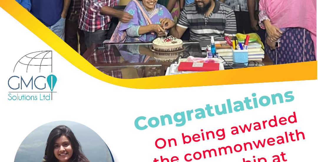 We are thrilled to share the news that Afrida Asad Abonty, director, GMGI Solutions Ltd, has been awarded the prestigious Commonwealth Scholarship this academic year! She will begin her Masters in Global Health Science and Epidemiology University, Nuffield Department of Population Sciences, University of Oxford in this October, 2022.